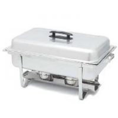 Serve your popular recipes quickly and conveniently with this 8 Qt. full size stainless steel chafer ! Accommodates either one full size or 2 half size pans. Brushed stainless steel with a contemporary silhouette for stylish presentation. The user-friendly design features a fitted twist-off lid that locks into cool-touch handles.